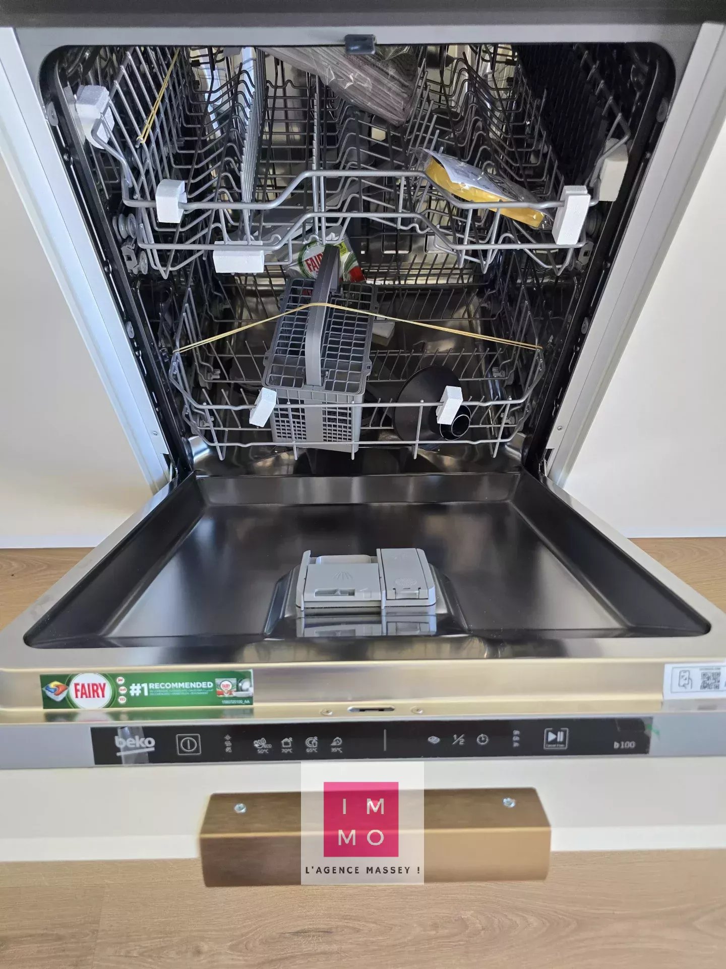- une grande cuisine équipée (neuve), espace salon et salle à
